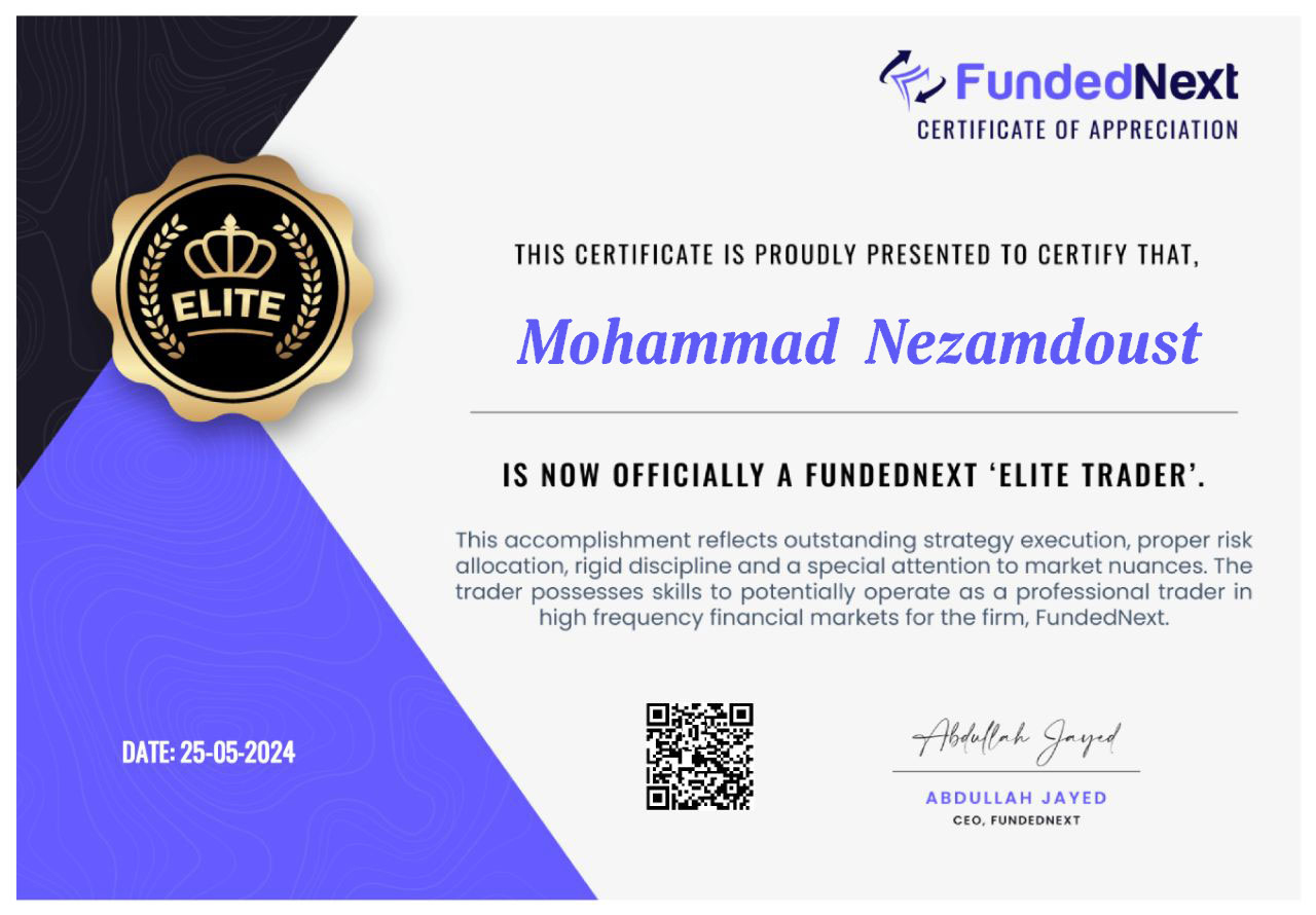 اینکه 95 درصد تو پراپ شکست میخودرن برام سوال بود ولی از وقتی از اکسپرت مدیریت سرمایه شما استفاده میکنم دقیقا درک کردم چطور طمع باعث شکست میشه و خوسحالم که تونستم مرحله چالش فانددنکست رو رد کنم و حساب ریل بگیرم